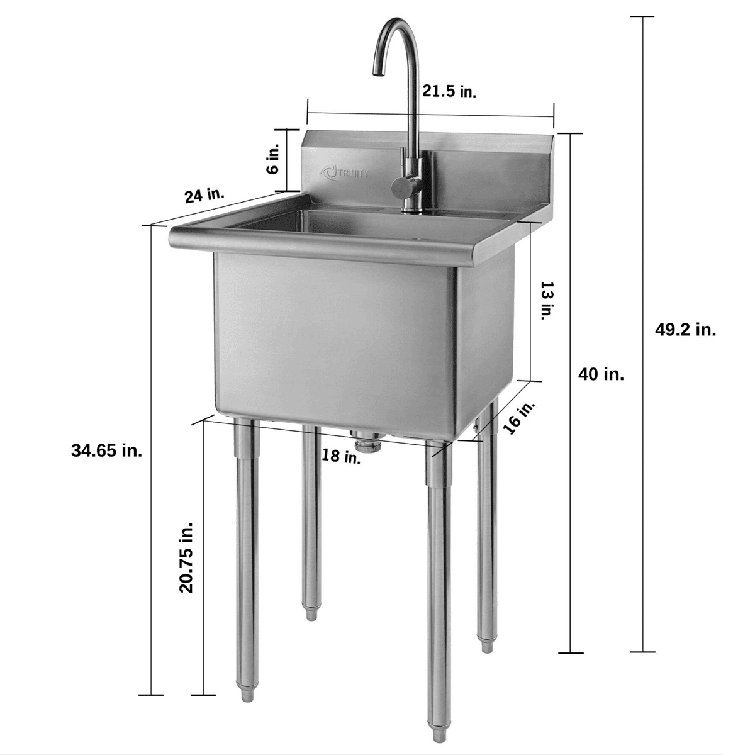 Commercial 18 Utility Sink W Faucet Stainless Steel